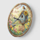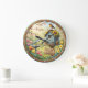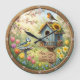 Invite the high-energy warmth of a sun-drenched morning into your home with the Welcome Spring Sunshine Birdhouse clock. This exquisite timepiece features a high-definition graphic that captures a peaceful garden sanctuary in full bloom. The artwork showcases a charming blue birdhouse adorned with a large sunflower, surrounded by a vibrant array of tulips, daffodils, and cherry blossoms. Two beautifully detailed songbirds—a cheerful robin and a vibrant blue tit—rest near a stone birdbath, bringing the scene to life. A rustic wooden sign hanging from the birdhouse post offers the heartwarming greeting, "WELCOME SPRING SUNSHINE." While the design masterfully captures the organic textures of weathered wood and delicate petals, this is a durable high-definition graphic application on a premium clock face. It is a prestigious and uplifting addition to any kitchen, sunroom, or breakfast nook.