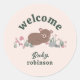 Welcome Sweet Woodland Baby Bear Pink Round Classic Round Sticker