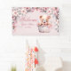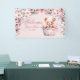 Welcome Teddy Bear Baby Girl Pink Flowers Party Banner. Unique, beautiful, stylish design. Easy to be personalised. Font style, size and colours can be changed. Matching items available.