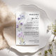 This lovely purple wildflower thank-you reception card features water colour calligraphy of wildflowers and is ideal for a modern wedding. The romantic minimalist design's wonderful black typography on a white background has a basic, clean appearance. Place these cards at each table as your guests arrive for the wedding reception.