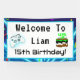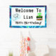 Power up your celebration with this bold and playful gamer-themed design! Featuring a gaming controller in a vibrant world filled with “Level Up” birthday cake, confetti, balloons, dragons, aeroplanes, and more, this fun design is perfect for adding a touch of gaming excitement to your party. This is a welcome to banner!