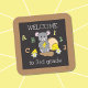 Some cute stickers with a cartoon mouse to welcome your young students on the first day of school . Personalise it with your grade level . Be aware that the brown frame will not be as thick as stickers are printed .