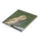 Welcome guests to your cabin with this beautiful decorative tile featuring a small brown sparrow. This photo captures this little bird as she relaxes showing off her shaded brown wing feathers and inquisitive look. The dark green background provides a solid colour for your words of welcome. "Welcome to the Cabin" can easily be customised if you desire.