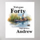 Welcome to Forty Men's Watercolor Birthday Fishing Poster