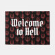 Welcome to hell Satan's fork pattern door mat. Add your own custom message, family name, monogram, surname or funny quote. Cool gift idea for new home / housewarming or engagement / anniversary party. Personalised doormat sign template. Create your own small or large entry mat / rug for front door / entryway or hall / venue. Customisable home decor / decorations for your house.