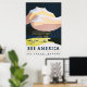 Welcome to Montana National Park poster. A poster promoting tourism in Montana. The vintage National Park poster shows a cluster of tipis with mountains in the background.