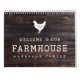 Design is composed of Modern Country Rustic with "welcome to our Farmhouse" typography. Every month has a different wood background.