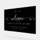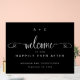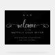 Set the tone for your special day with this sleek black-and-white acrylic wedding sign. Featuring "Welcome to Our Happily Ever After" in a stylish handwritten script with graceful swashes, this modern minimalist design is effortlessly elegant. Personalise it with your initials, names, and wedding date for a timeless, sophisticated touch. © Kimbellished, LLC