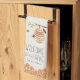 Welcome guests with this cute bee themed kitchen towel featuring watercolor illustrations of honeybees, honeycomb and a hive, with "welcome to our hive" in ivory lettering. Personalise with your family name along the bottom.