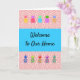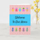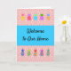 Bright and cheerful pineapple design card with the words "Welcome to Our Home". The card has a peach coloured design in the background with colourful pineapples. The wording is in a blue boxed off area. You can change all the words on the card. Thanks to Creative Fabrica for some of the elements in the design.