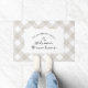 Welcome to our home modern script beige and white natural buffalo check personalised doormat design.
