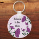 House rentals are becoming more and more popular and more competitive. Set your vacation rental apart with this unique keychain featuring bright purple flowers that wind and curve their way along the inexpensive round keychain. The bright purple of the flowers is complemented by the dark green leaves and stems. "Welcome to Our Home" can quickly and easily be customised to suit your needs allowing you to give your guests their key to your rental home with style.