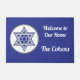 Welcome your guests with this beautiful, custom doormat. Star of David design with "Welcome to Our Home" in modern white font, as well as your own name. All text sizes, colours and fonts can be changed to suit your own taste. Fully customisable. Also makes a nice Hanukkah gift.