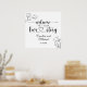 A modern and elegant black and white floral line art 'Welcome' sign for your Big Day!
