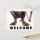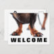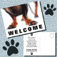 A cute dog and cat cartoon, bold welcome greeting and warm message inside. Easy to personalize for your office.