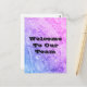 This inexpensive employee postcard is a great way to welcome a new employee to your company. The marbled abstract pattern displays colours of pink, blue, and purple. Customise text on both sides of the postcard quickly and easily.
