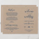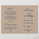 This is the foldable wedding ceremony program card, in Navy Blue elegance classy script, rustic brown kraft theme.