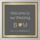 Romantic and personalised wedding-poster. Add bride and groom initials to the template to create a nice design with faux gold border and a love heart, with the text 'Welcome to the wedding of (couple initials). Thank you for celebrating with us'... in a thin and elegant font-style on grey background. Nice idea to make your wedding reception elegant