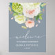 Elegant watercolor white and green hydrangeas, pink and cream roses, daisies and greenery on a dusty blue background, this welcome sign poster is a beautiful way to invite greet guests to your wedding. CHANGE THE SIZE to fit your event. MATCHING items in our collection.