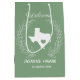 Welcome state map with hearth and leaves wreath. Personalize your name and date wedding,birthday or any state party custom gift bags. The background color is also customizable. Click on customize further and choose your own color.