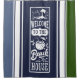 "Welcome to the Beach", navy blue and white colour, modern / coastal style shower curtain, featuring steel blue and moss green stripes on the sides, designed by theLakeIsland.