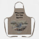 The adorable little snowy plover featured on the apron is standing on the beach and having a look around. Driftwood and seaweed surround him. the coastal bird appears inside a heart with "Welcome To The Beach" appearing above the nature photo. Customise all text easily if you desire.
