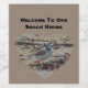 The adorable little snowy plover featured on this wine bottle label is standing on the beach and having a look around. Driftwood and seaweed surround him. The coastal bird appears inside a heart with "Welcome To Our Beach House" appearing above the nature photo. Customise all text easily if you desire.