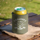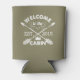 Welcome your weekend guests this vacation-ready can cooler. Olive green koozy features "Welcome to the Cabin" in rustic sandblasted text, with a rope illustration, pine trees and crossed arrows. Customise with your year established.