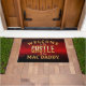 This bold castle-themed doormat establishes presence at the door with strong typography and confident styling.