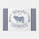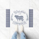Stylish front doormat features centre "Welcome to the Farmhouse" text with farm animal silhouettes and a blue gingham background