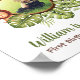 Around a child photo in round brown wood log frame, there is a group of cute jungle animals painted in watercolor: a lion, a giraffe, an elephant and a zebra, with exotic monstera and palm leaves leaves behind them, all this looking like a green flower. Above the "flower", the words "Welcome to the Jungle" are written in arched green handwriting. Under the "flower", the text "[Name] is a Wild One" is in the same green handwriting script, the rest in smaller brown letters. The default name is William.