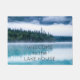 Beautiful lake reflection photo personalised home decor is the perfect decor for a lake house, vacation home, cabin in the woods or beach house- Perfect decor for nature lovers- Reads 'Welcome to the Lake House' in modern letters on the bottom half. Filled with a beautiful landscape nature photo of a lake reflection with fog and mist rolling over the aqua water and pine trees and evergreens with a cloudy sky in the background. Nice housewarming gift. Would be right at home in front of a cosy log cabin or lake house in the woods.