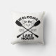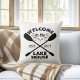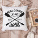 Spruce up your vacation home with this rustic-chic throw pillow. Design features "Welcome to the Lake House" in woodsy black typeface with a rope illustration and two crossed canoe paddles. Customize with the year you started life at the lake! Great housewarming or hostess gift, too.