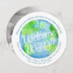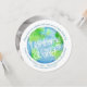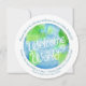 Whimsy watercolor painting of the world baby welcome invitations. Personalised with your own baby photo on the reverse, and welcome new baby party details. Cute blue and green loose world background. Other matching welcome baby items available. © Uniquely painted in watercolor and designed by www.mylittleeden.com