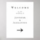 Welcome to the wedding of the [Bride's Name] and [Groom's Name] the black and white sign states, with the date right below. A little arrow, you can point it any way, helps folks find the party. Simple, easy, and gets you where you need to go!