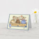 This card can be customised as an announcement as well as congratulations on the birth of triplets. Three whimsical folk art bears sitting on top of a sign saying "Welcome Triplets!", which is decorated with a baby bottle and a rattle. A cute design, and don´t forget to buy the matching postage stamps as well!