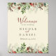 This Welcome Wedding Sign Poster features watercolor greenery forest twigs and leaves, red holly berries and elegant trendy script.
