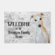 Welcome to the "Your Family Name" Home, or change to the cottage. A dog themed welcome mat for the family who loves their dog as part of their family. The design features a gorgeous Whippet. Personalise your family name.
