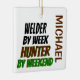 This unique ornament featuring the quote "Welder by Day Hunter by Weekend" is perfect for any welder that loves hunting.