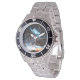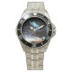 Has heft and feel of expensive stainless steel quartz watches. Good band with safety catch. I removed links, which is easy because engraved arrows show direction to push the linking pins. As always by this seller, the image (a railroad logo) is a perfect reproduction of my emailed image, and is precisely spaced and aligned.
