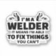 Add a spark of humour to your world of welding with our hilarious and quirky welding stickers! Let your welding gear and personal items radiate laughter as you showcase your love for the craft. Our funny welding stickers are the perfect blend of creativity and wit, featuring whimsical illustrations that capture the lighter side of metal fabrication. From welder caricatures in amusing poses to comical depictions of sparks and welding mishaps, these stickers are sure to bring a smile to your face and those around you. Elevate your welding space, toolbox, and accessories with these lighthearted designs that celebrate the camaraderie and joy within the welding community. Embrace the fusion of fun and function with our one-of-a-kind funny welding stickers, and let the laughter weld you closer to your passion!
