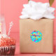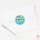 Round award sticker is decorated with colourful stars over a light blue background. This design can be customised. Perfect for school rewards.