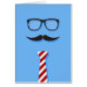 Fun Fathers Day card with glasses, moustache, and tie on a blue background. Inside reads "Well done Dad, I'm awesome - Happy Fathers Day." Text is customisable.
