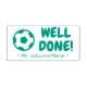 This positive rubber stamp design features the encouraging feedback message "WELL DONE!" and a customised tutor's name. It also features a decorative soccer ball icon. It could be used by a teacher, educator, instructor, or tutor when marking assignments, to acknowledge that a student has done well.