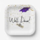 Well Done Graduation Gold Confetti With Purple Cap Paper Plate