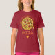 Curvy slogan with the phrase "We'll get along if you like pizza" and a super tasty pizza in the middle. For dating and friendship lovers.