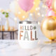 This fall-themed design warmly welcomes the autumn season with the phrase "Hello Fall." The words are arranged in a simple yet visually appealing layout, with "Hello" placed above "Fall." Each letter in the phrase is presented in a bold, blocky font with a slightly distressed texture, giving it a rustic, weathered look that complements the autumnal theme.