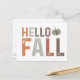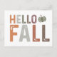 This fall-themed design warmly welcomes the autumn season with the phrase "Hello Fall." The words are arranged in a simple yet visually appealing layout, with "Hello" placed above "Fall." Each letter in the phrase is presented in a bold, blocky font with a slightly distressed texture, giving it a rustic, weathered look that complements the autumnal theme.