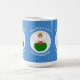 Magic morphing mug features a Welsh Flag Angel, dressed in the flag of Wales, inside a white, fractal circle of squiggly squares. The circle is on a blue fractal background of squiggly squares. Add a name, holiday, and year to personalise your mug as a gift or to add to your holiday decorating. Lovely Hanukkah decor. Design shows on three sides of mug.