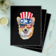 Cute Welsh Corgi with American Flag hat and sunglasses